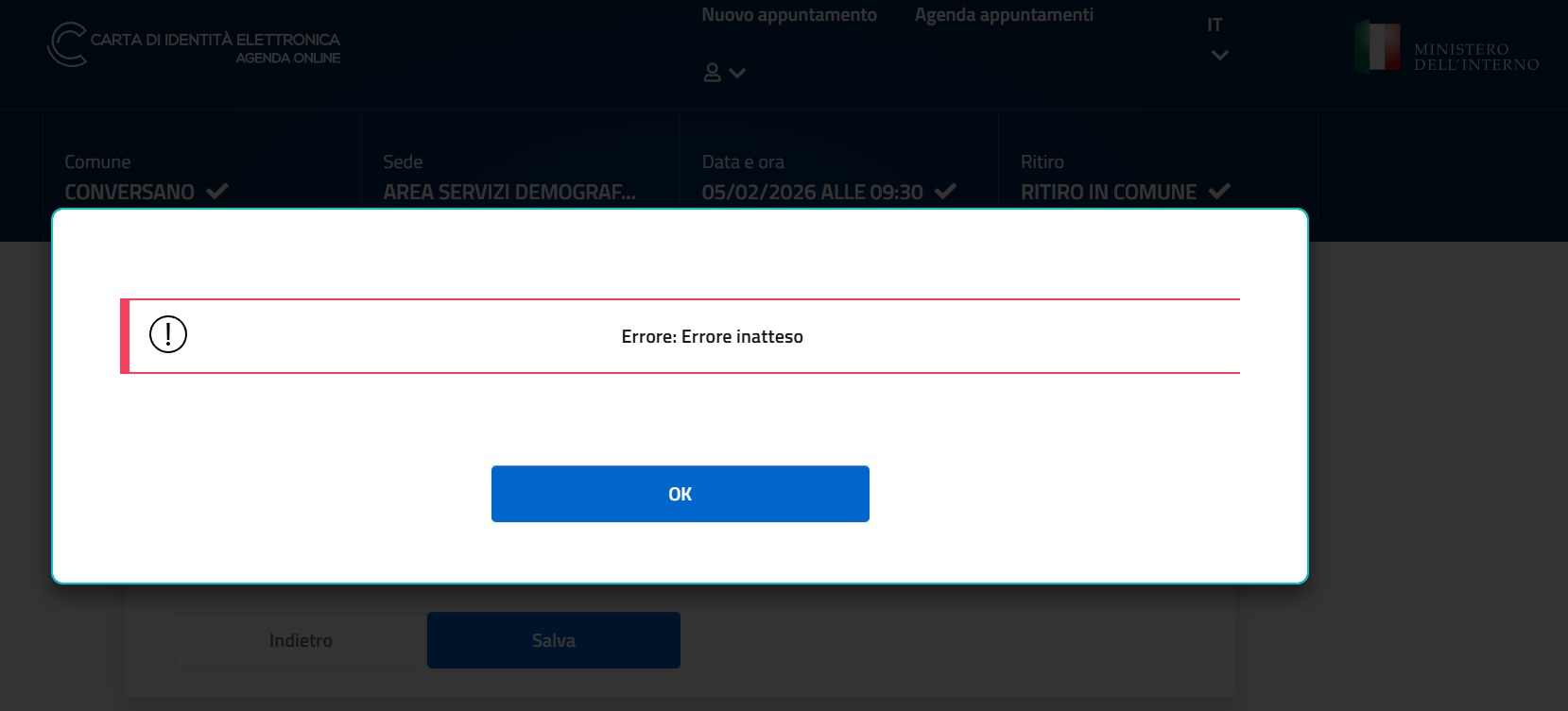 Confermo pure io stavo provando ad inviare la foto per la CIE nuova di mio padre (appuntamento 17 febbraio) e provando sia da diversi browser che sistemi operativi (Windows, Macos e Linux) mi restituisce sempre errore inatteso, inutile dire che la fototessera rispetta tutti i canoni richiesti per l’upload. Mah.