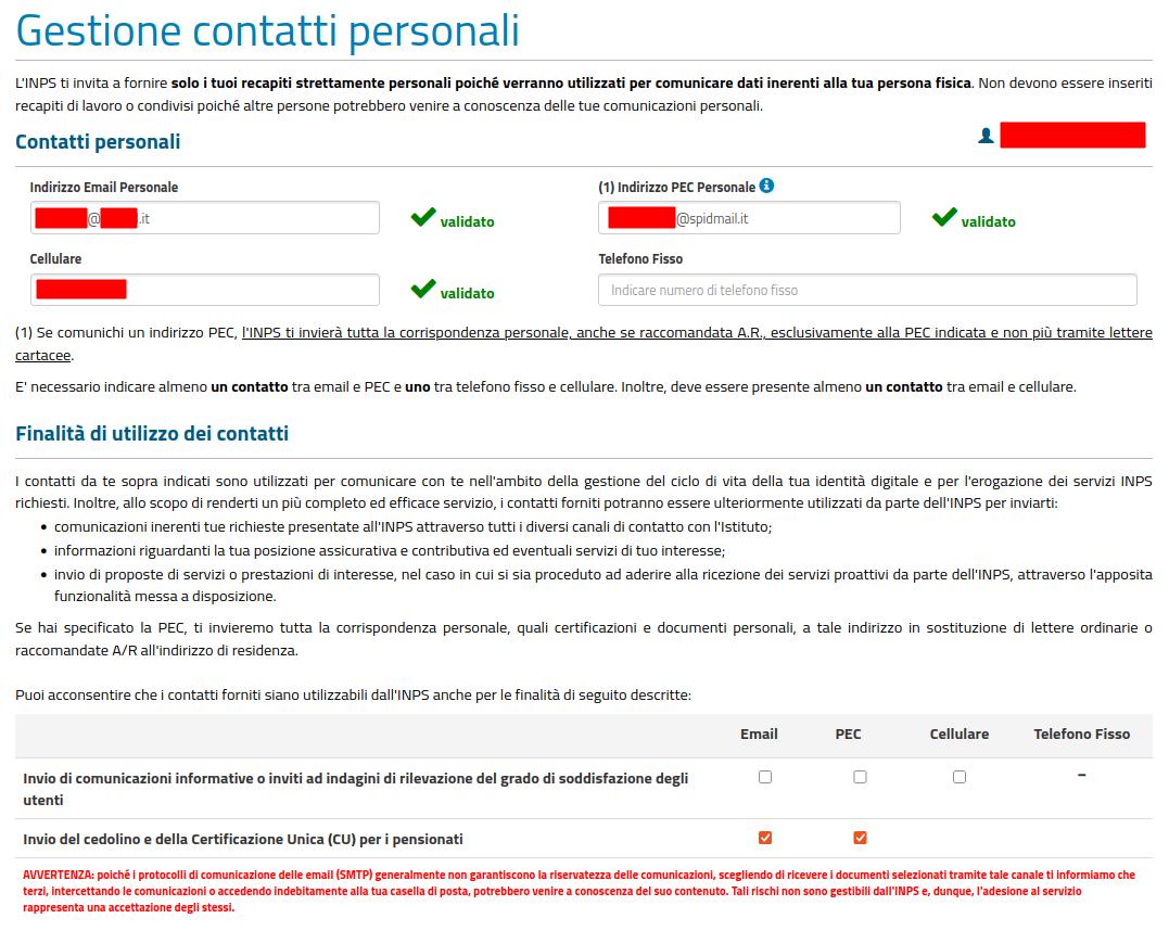 In base a quanto scritto qui: “Da quel momento le comunicazioni con l’Istituto viaggeranno via email. Tuttavia, nel caso in cui la PEC risulti piena o non disponibile, dopo tre tentativi di invio, viene utilizzato il tradizionale canale di raccomandata A/R.”, avevo dunque pensato che la PEC fosse satura ma così non è perchè ci sono solo 15 comunicazioni (Spazio utilizzato: 3.1 MB / 1.0 GB). La PEC è spidmail (namirial), che ho impostato in “Gestione contatti personali” a gennaio di quest’anno ed ha sempre ricevuto le notifiche INPS senza problemi.