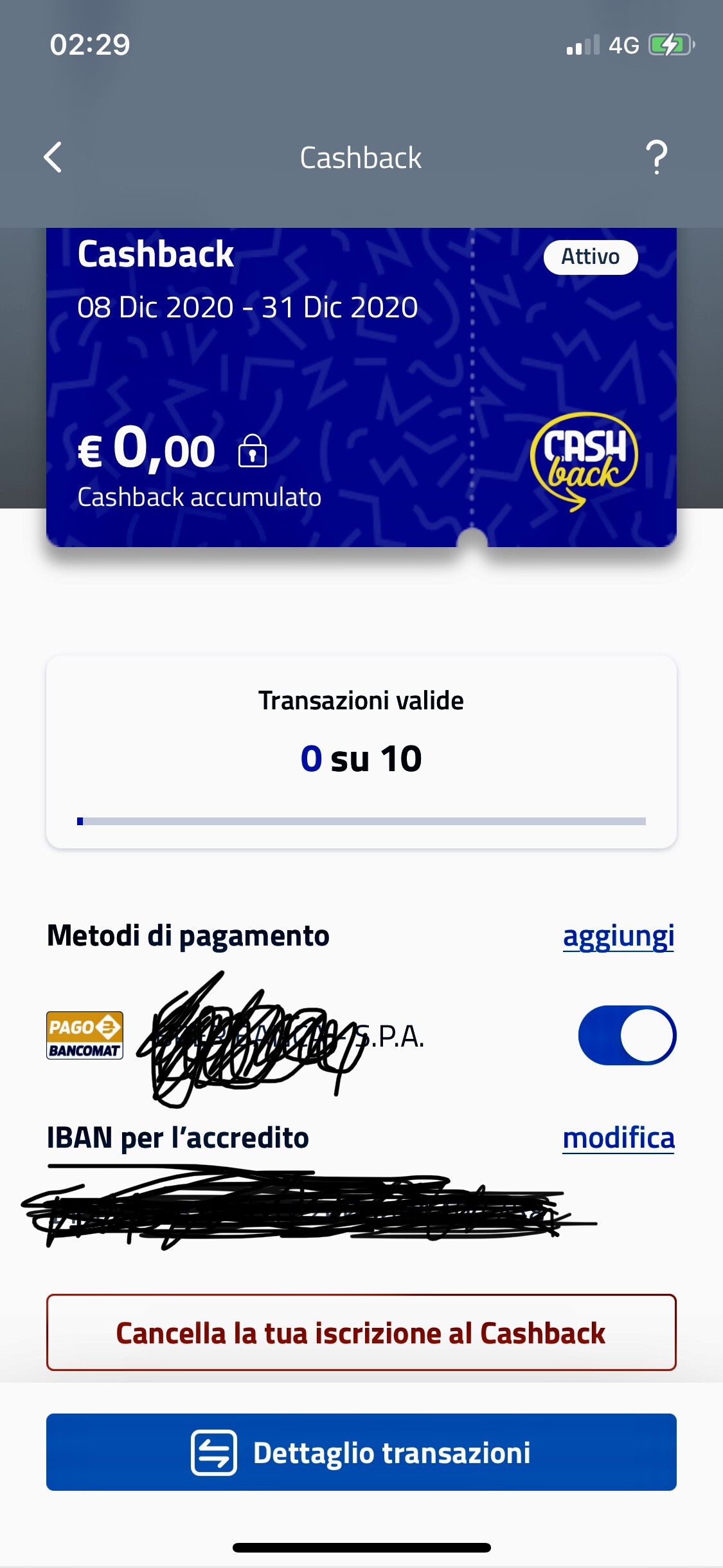 Proprio così; attualmente non puoi modificare il cash bak, perchè se cerchi di attivarlo di nuovo ti dice che è gia attivo e che puoi vedere i dettagli nel portafoglio, ma, sorpresa!, nel portafoglio il cash back non c’è!