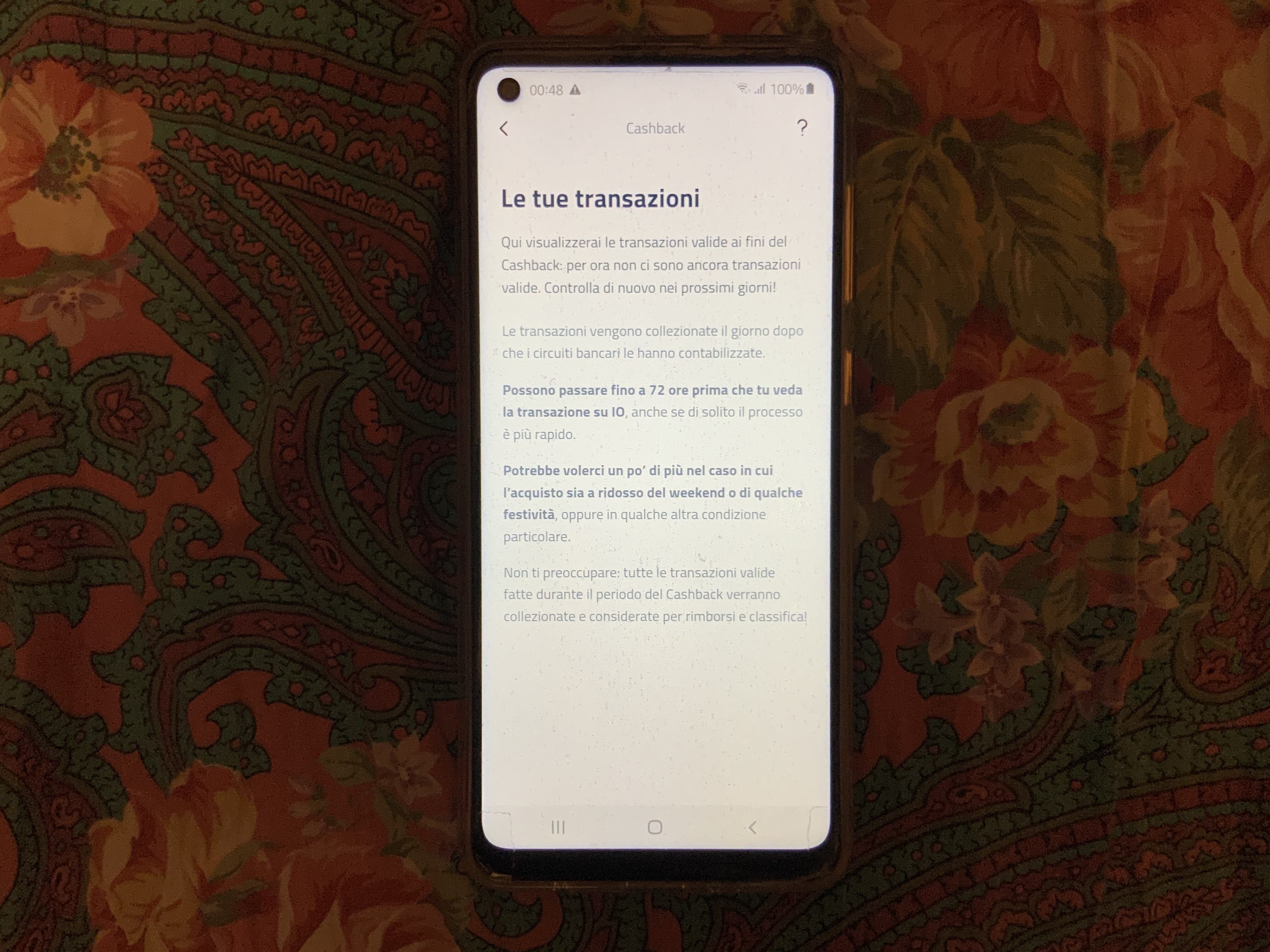 Sono le eccellenze italiane. Se per caso entri nella attivazione cashback prima devi inserire iban, che ti servirà (forse) fra un mese, e poi la carta bancomat o di credito che ti servono da domani. Volendo inserire la carta bancomat comincia a cercare tutte le bance e carica, carica e si impalla, e qui finisce il setup. Entrando di nuovo cashback non c’è, se lo inserisci di nuovo ti dice che è già attivo. Sì, puo darsi però è invisibile e mancano le carte di credito o bancomat. Bellissimo e molto professionale.
