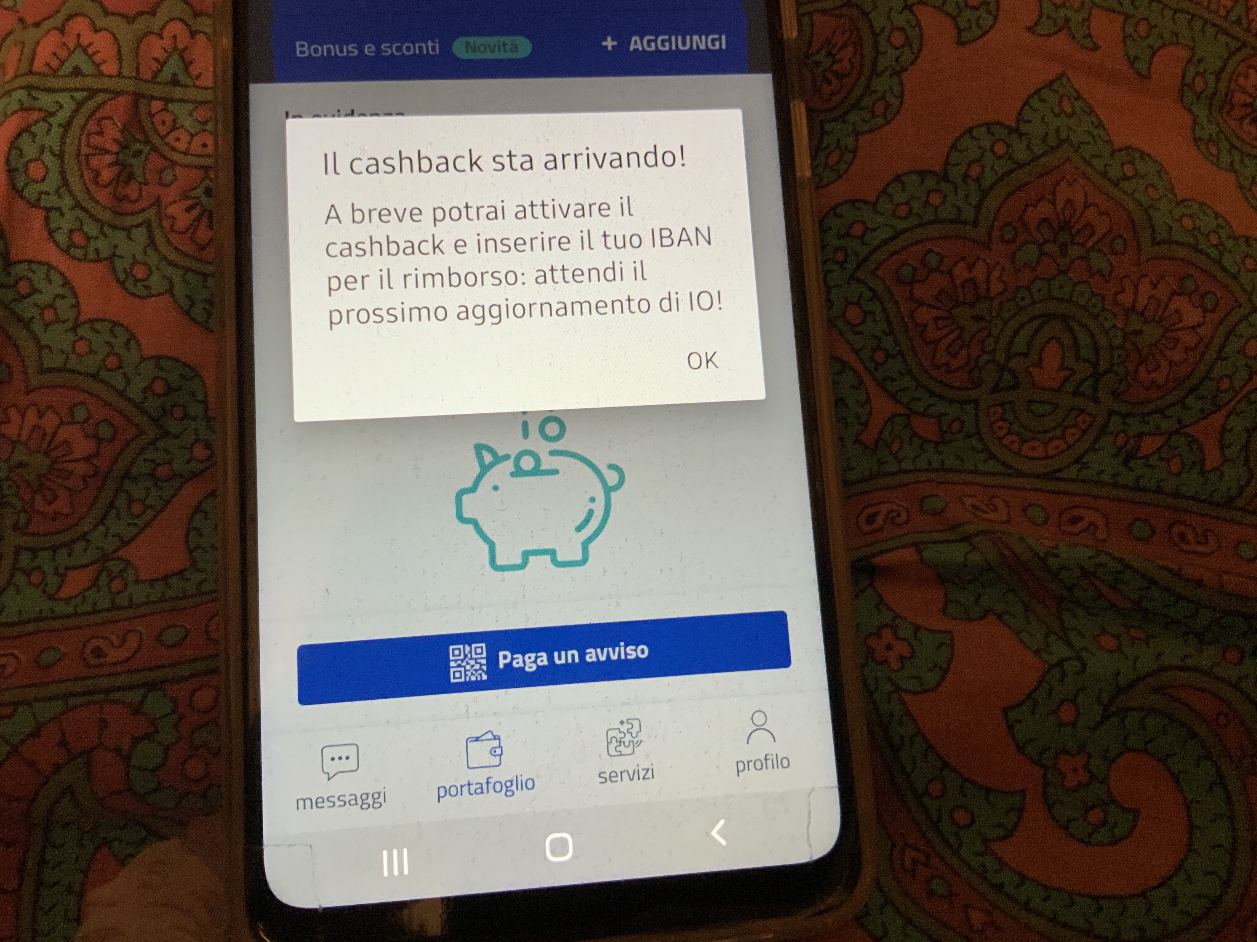 Ho aggiornato l’app lo smartphone Android e iPad. Ecco le due videate che confermano l’imminente avvio del cashback.