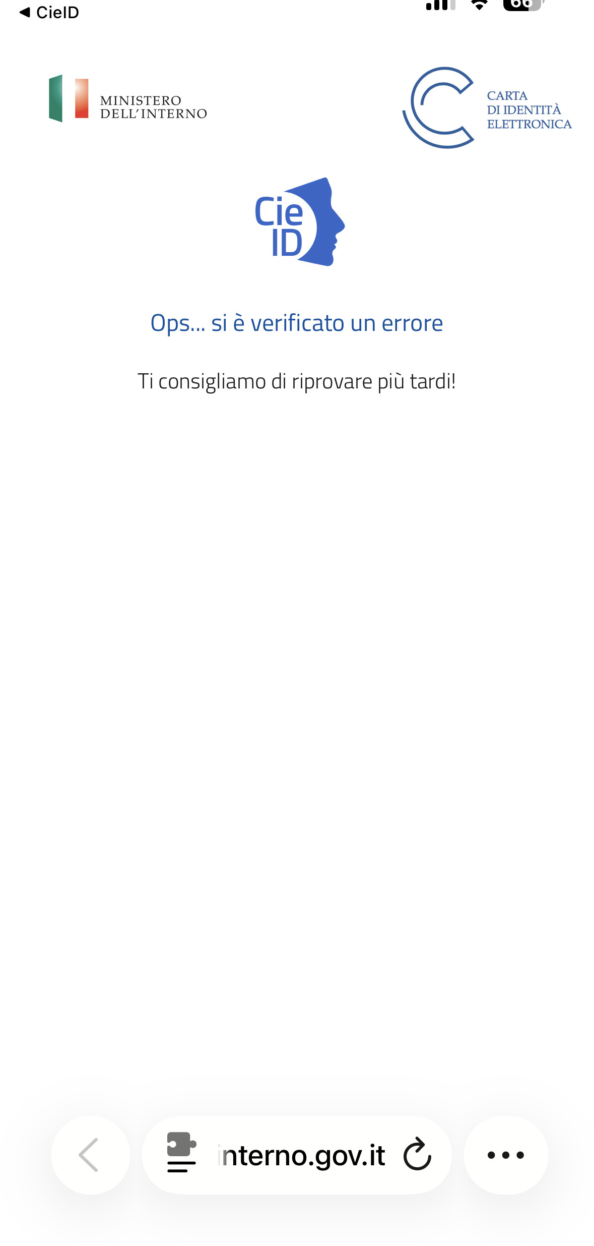 Apri le impostazioni del tuo dispositivo e verifica che, l’app abbia l’accesso senza restrizioni , il messaggio che ti restituisce il Ministero dell’Interno non è necessariamente un errore del Server, ma anche un errata comunicazione del dispositivo nel trasmettere i dati.