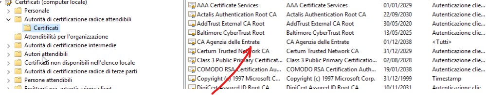 issuer=/C=IT/O=Agenzia delle Entrate/CN=CA Agenzia delle Entrate